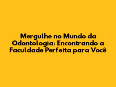 Mergulhe no Mundo da Odontologia: Encontrando a Faculdade Perfeita para Você