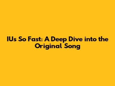 IU's 'So Fast': A Deep Dive Into The Original Song