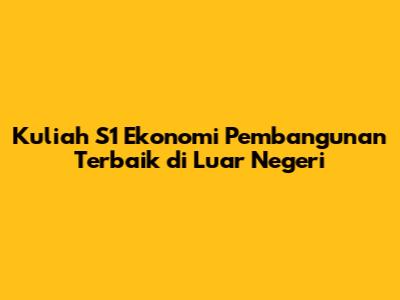 Kuliah S1 Ekonomi Pembangunan Terbaik Di Luar Negeri