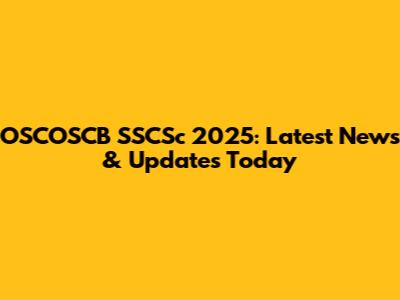 OSCOSCB SSCSc 2025: Latest News & Updates Today