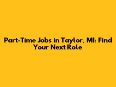 Part-Time Jobs In Taylor, MI: Find Your Next Role
